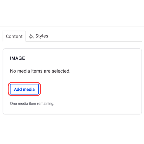 - Click on Add media in the Image Section if you are creating a Hero component with an image.