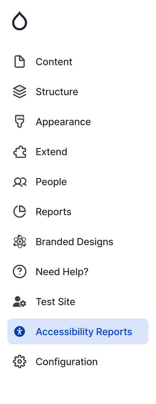 - Navigate to the Drupal menu and click on "Accessibility Reports"