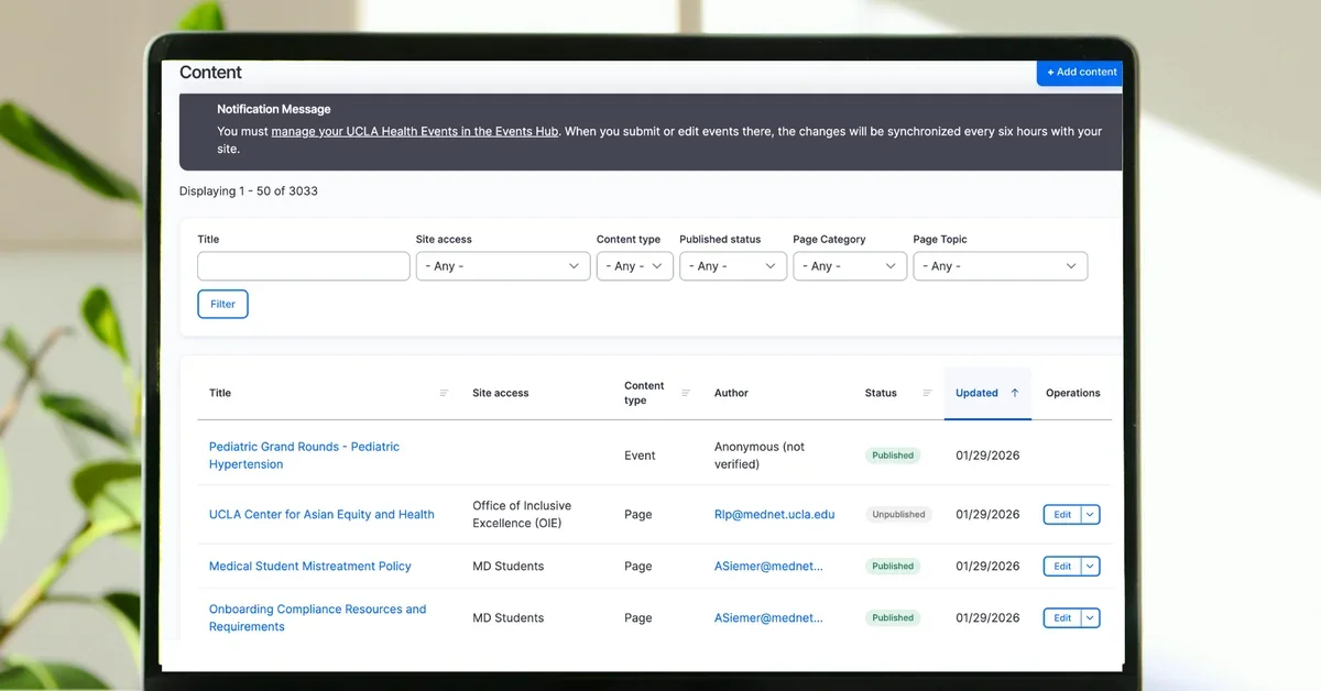 Breadcrumb Home Knowledge Base Quick Start Guide Quick Reference Guides Finding a Published and Unpublished Page Finding a Published and Unpublished Page Quick Reference Guides Basic Options in the Text Editor Basic Page Types and Common Settings Creating a Button Finding a Published and Unpublished Page Review of Page Logging in to Your Website Quick Start Guide Logging in to Your Website Main Navigation Bar Finding a Published and Unpublished Page Content Types WYSIWYG Content Editor Glossary How to Find ContentSelect the Content button.You are able to filter to the desired page.Shows the status of the content.