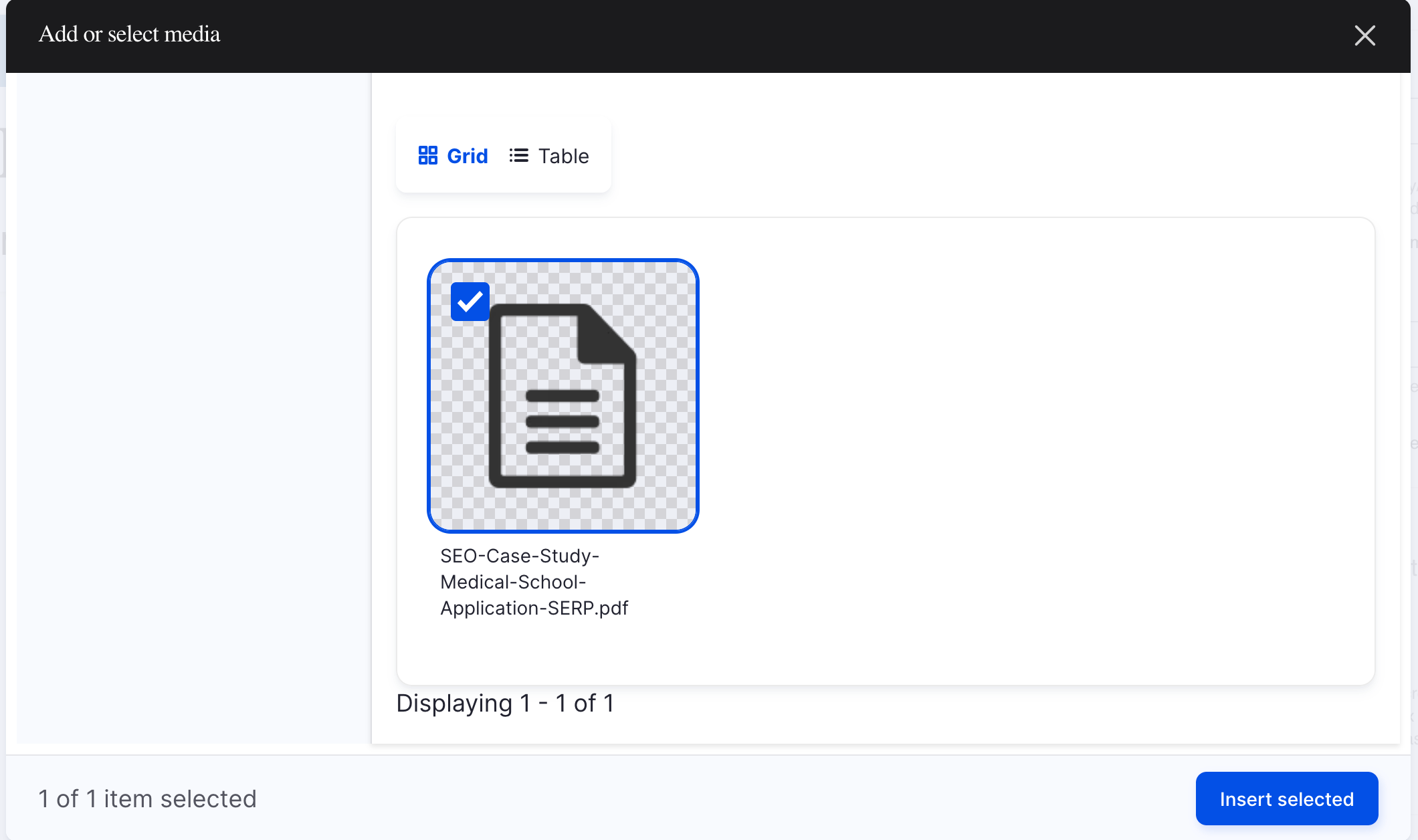 - Go to Content > Media > Add Media, then select Document.
