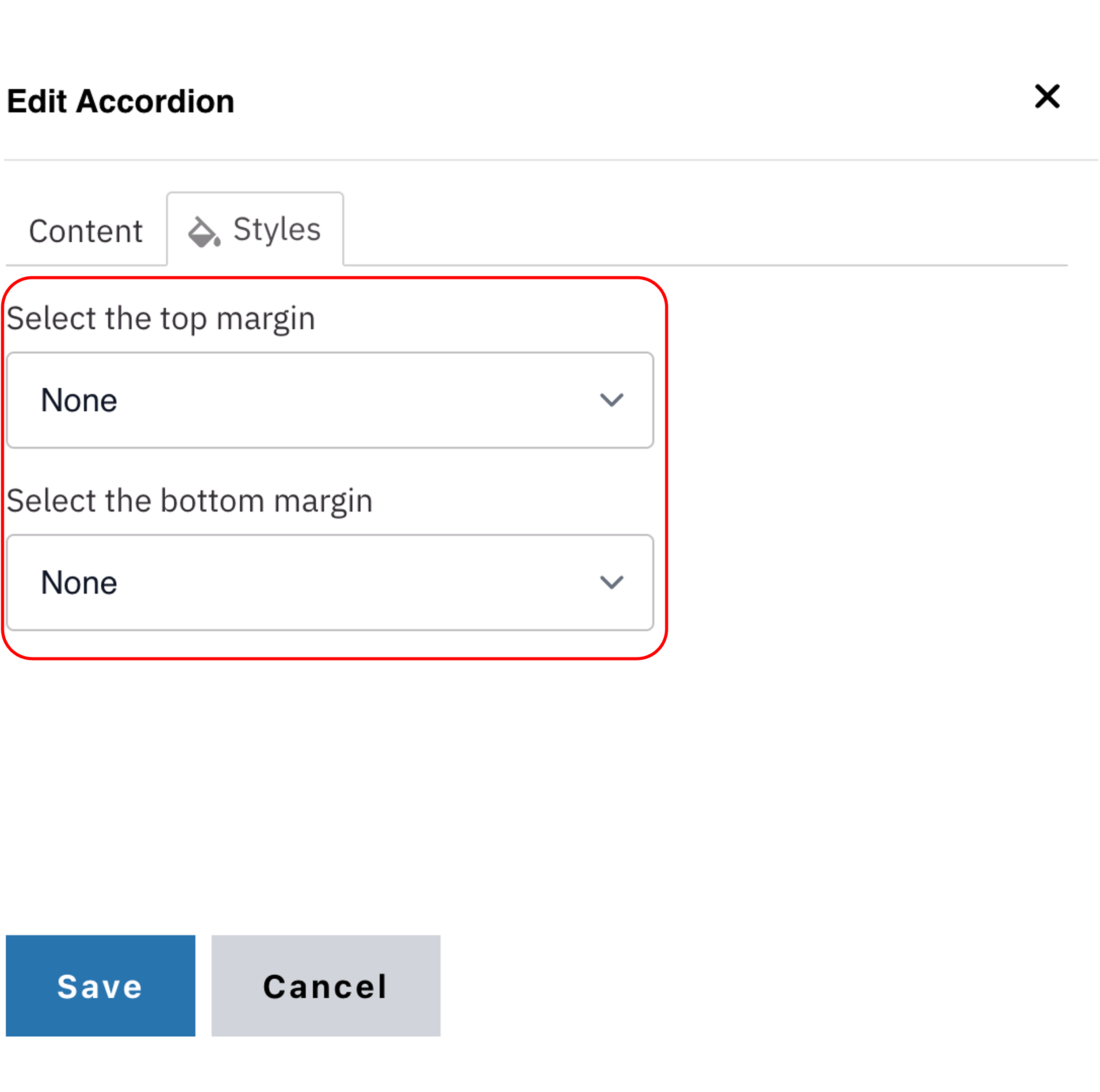 - Select the amount of additional space you would like above the component.