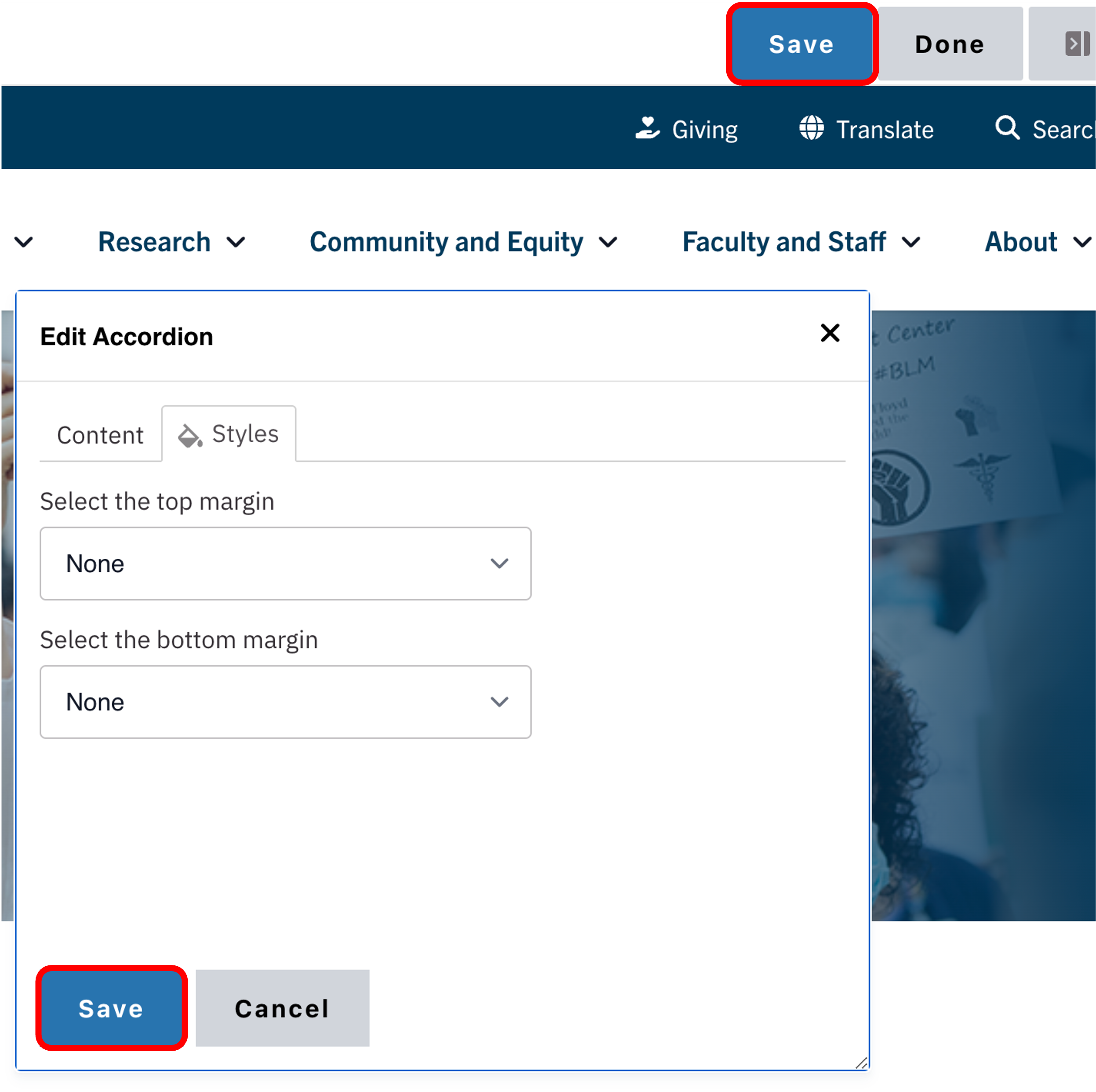 - Scroll to the top of the page and click Save.