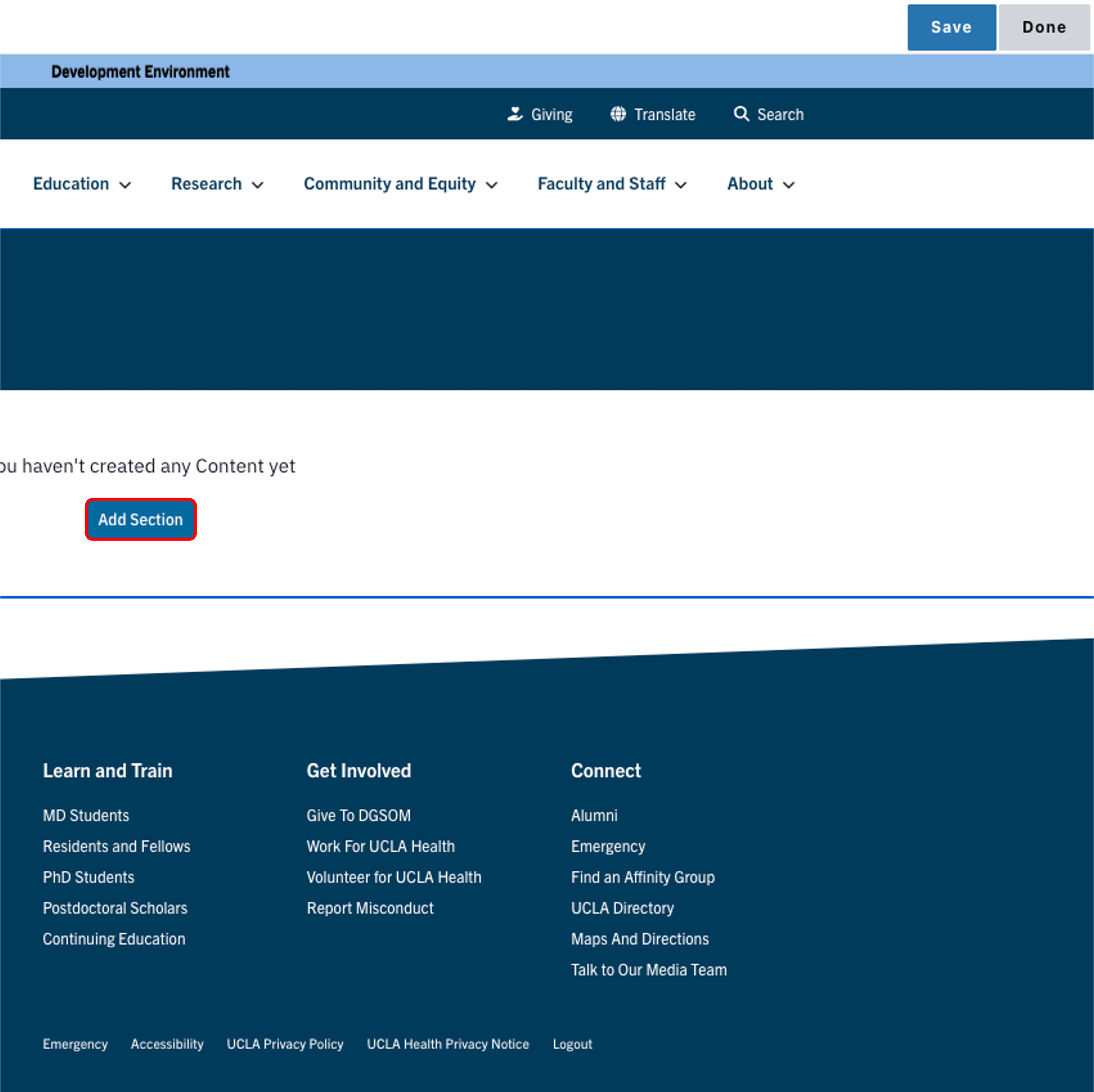 Using sections is an effective way to enhance the visual appeal of your content. When creating or editing content in the Web Platform Healthsciences Healthsciences, a section refers to a group of fields that are logically grouped together. This grouping improves content editing usability by organizing related fields into manageable parts. Sections also help organize content visually; for example, a page might have a header section, a main content section, a sidebar section, and a footer section. These sections aid in structuring content and enhancing the user experience.