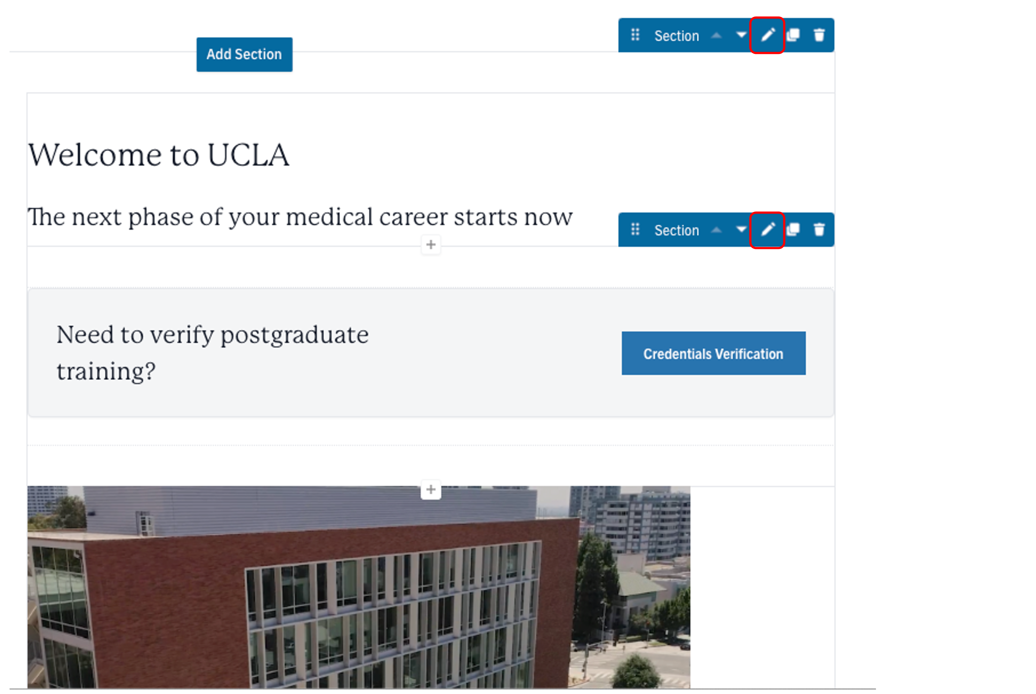 - You will see the section menu appear on the right side, click the Pencil icon.