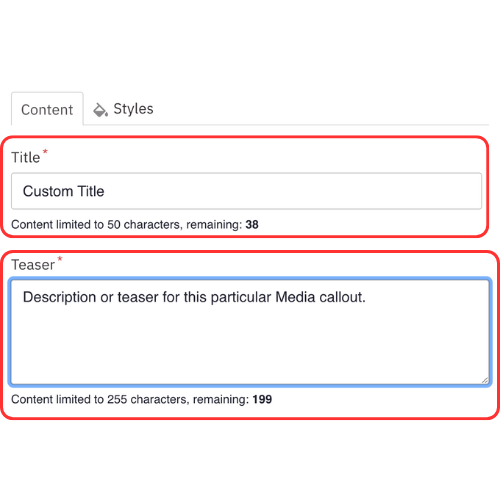 Note: Title field text is limited to 70 characters. - Add Teaser text (optional).