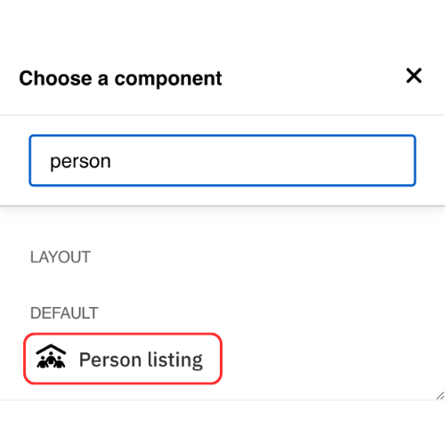 The Person Listing component allows you to place person profile cards on a page. The Person Listing can be displayed either vertically or horizontally.