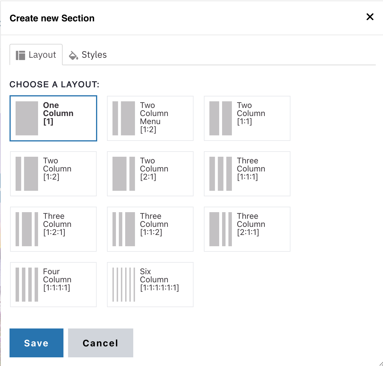Note: This setting is only available for site owners and should be used sparingly. It is recommended to apply it only once per page to emphasize key information. - Select Columns to place your section horizontally. This should be used only with the Icon component.