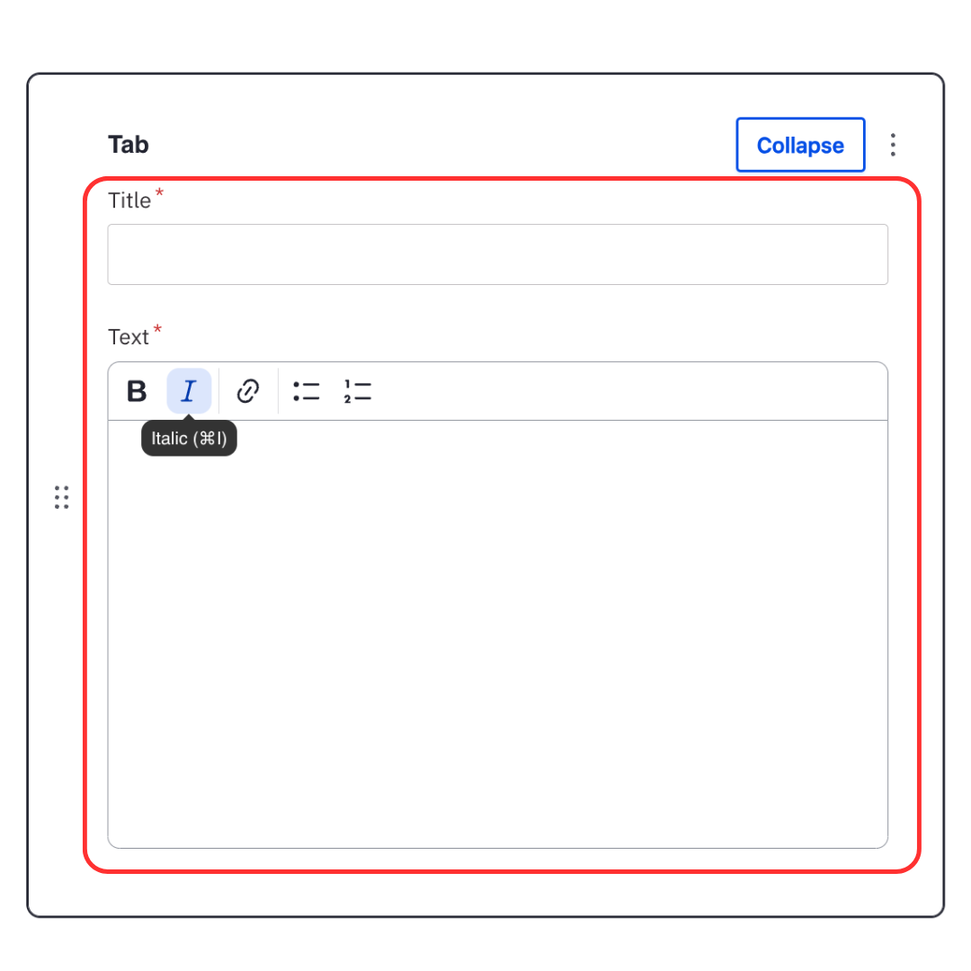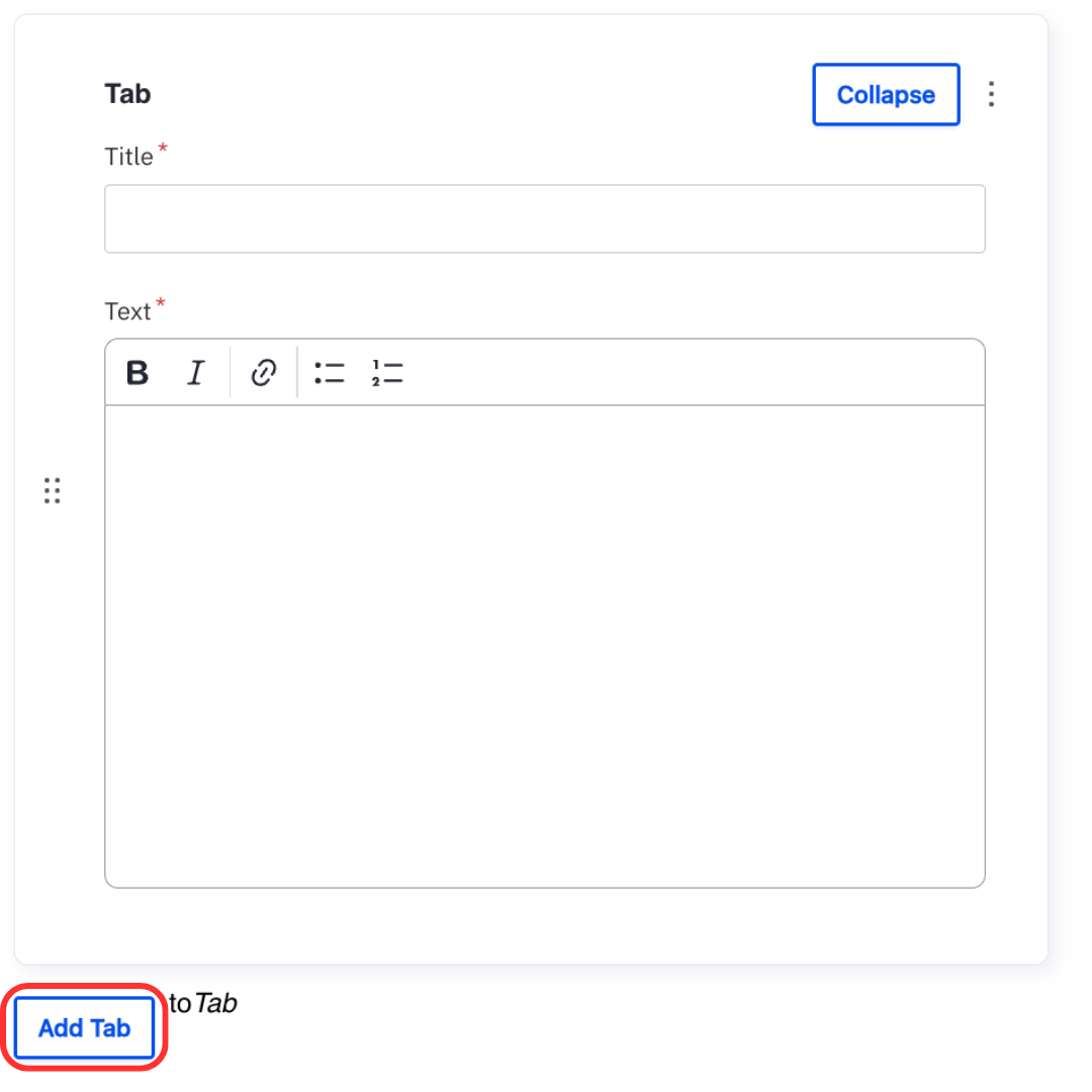 Note: Visit this page to learn more about how to use the WYSIWYG Content Editor. The text is limited to 300 characters - Click Add Tab.