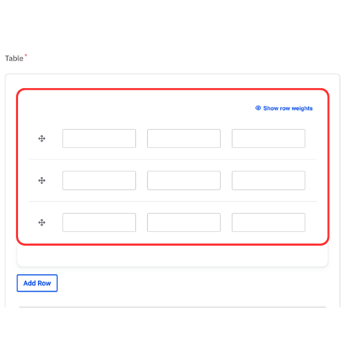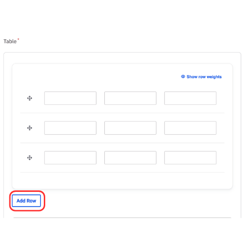 Note: The table will properly display HTML code added to the cells. Only basic HTML code should be used such as adding a URL. - Add a single row at a time.