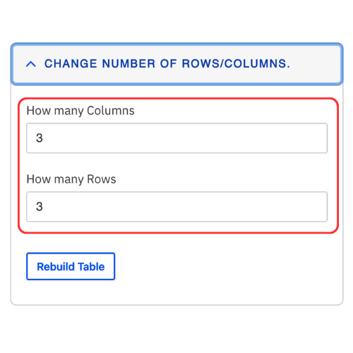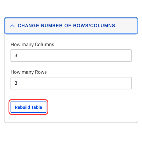 - Expand the Change number of rows/columns if you would like to add multiple rows and columns at once.