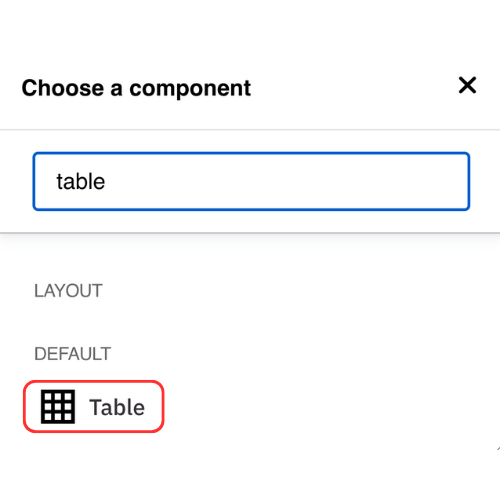- Layout Options settings used to create this component are: Table type: Default