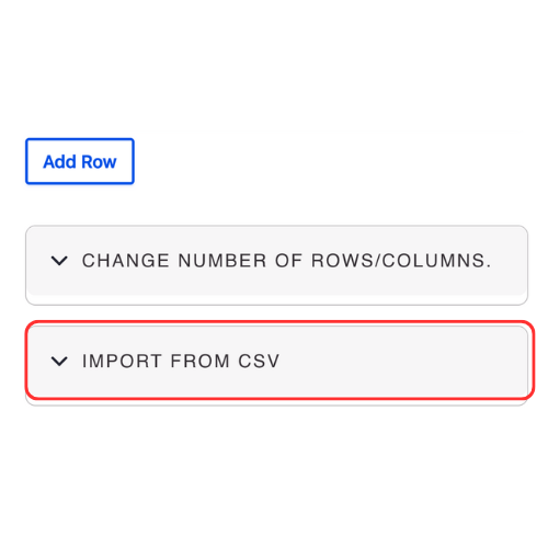 - Expand the Import from CSV if you would like to upload a CSV file to complete your table.